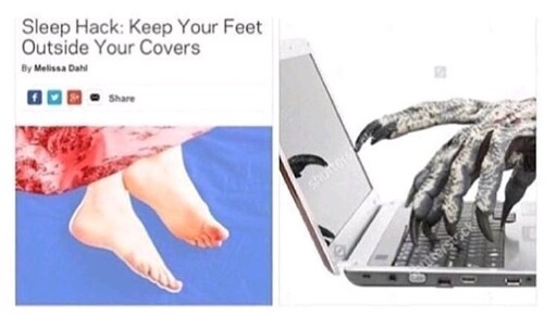 I lift my legs and do a blanket fold so the foot fetish monster can’t mess with my feet.