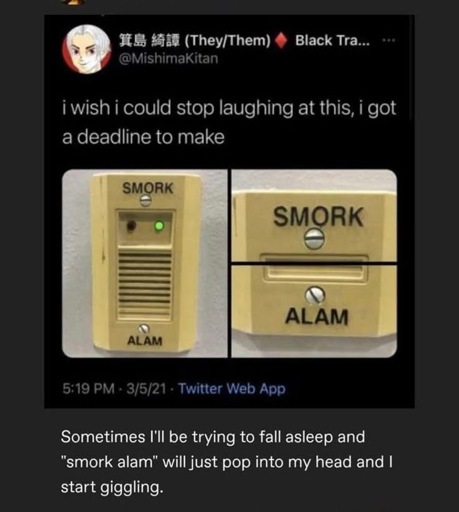 Someone in Hull told me that they had a door-to-door salesman selling “smirk alarms”.
