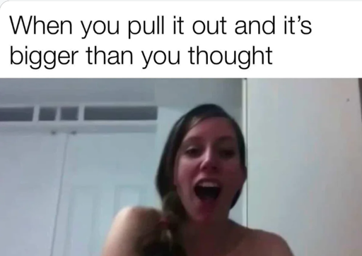 arrow-up1-13arrow-down1imageYour BF brought you a Banana Cream Pie. It's your favorite. But initially you looked at the box and were disappointed because it looked kinda smallNSFWlemmy.worldMickey7@lemmy.world to Lemmy Shitpost@lemmy.world · 4 days agomessage-square1linkfedilink
