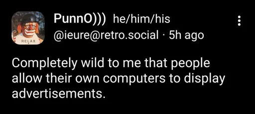 minus-squarecobysev@lemmy.worldlinkfedilinkEnglisharrow-up6arrow-down1·7 days agoI bought a micro PC and use that to stream Plex and other Internet media directly to my TV. I don’t connect the TV itself to the Internet and I don’t have cable or public access TV. I can block all ads with my micro PC and home network.
