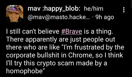 arrow-up1944arrow-down1imagewhotd uses bravelemmy.blahaj.zoneIO 😇@lemmy.blahaj.zone to Microblog Memes@lemmy.worldEnglish · 2 days agomessage-square162linkfedilinkfile-text