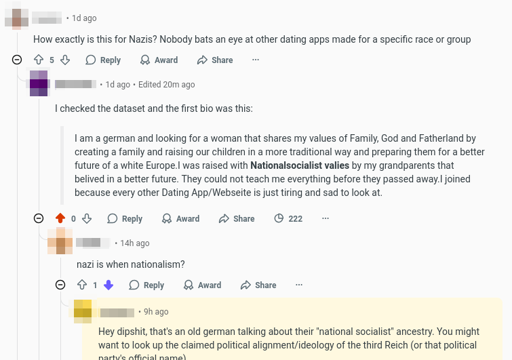 The profile data and images were made public at okstupid.lol and it’s extremely clear that the site was for racists and straight up Nazis. There are a lot of profiles with pictures of Hitler, swastikas (the red, white and black kind) and neo-Nazi symbols and brands. Anybody denying that is an idiot and/or a Nazi trying to distract people.