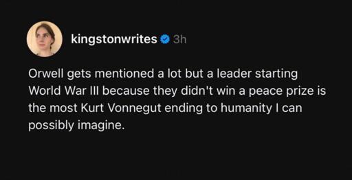 Had the same thought yesterday - a lot of what we’re seeing is like the latter stages of Catch-22 - they have the right to do anything you aren’t able to prevent them doing, and all that. Grim times.