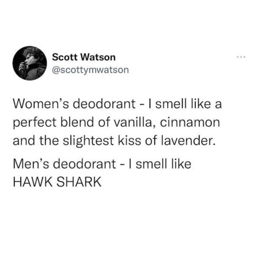 Most old spice deodorants are so sweet they could almost be considered girly, but they market it as manly. It’s genius.