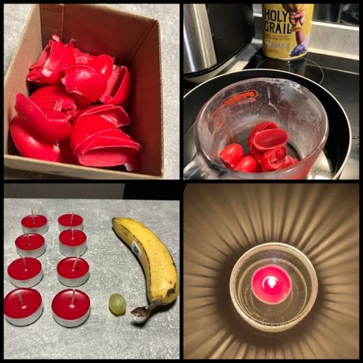 I think they’re cheese waxes like from Laughing Cow. They’re saying “melt down old cheese waxes to make romantic red tea-light candles for your Valentine.”