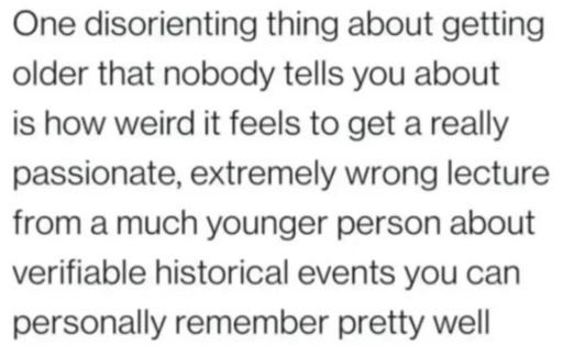 Does it count if it was 2020 and the person is also your age? I feel like a LOT of people have a weirdly revisionist memory of the first few months of the pandemic.