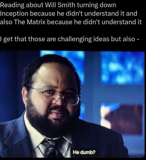 In general, will smith has always been an action type of guy in his roles, but to do that he always needed to have clear motivations. I guess a nested dream in a dream isn’t functional for this type of actor.