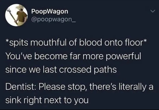 minus-squareRebekahWSD@lemmy.worldlinkfedilinkEnglisharrow-up5·1 month agoHaving just been to a miserable deep cleaning, there was a lot of blood. So much. Not their fault.