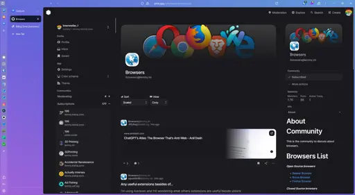 Currently I think the one that is the most exciting to me is Natsumi Browser, a modification for most firefox-based browsers with an interface similar to arc or zen browser. I used zen for months after it released, but every few updates some core functionality would break and they kept removing features that were essential to my workflow so I much prefer this as a modification on top of Floorp. I think the dev just does it as a hobby project, but there’s new useful features added frequently, and keybindings!