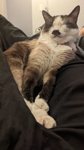 He’s matured! The vet said Bitty was 4 weeks when we found her. That was 4 years ago